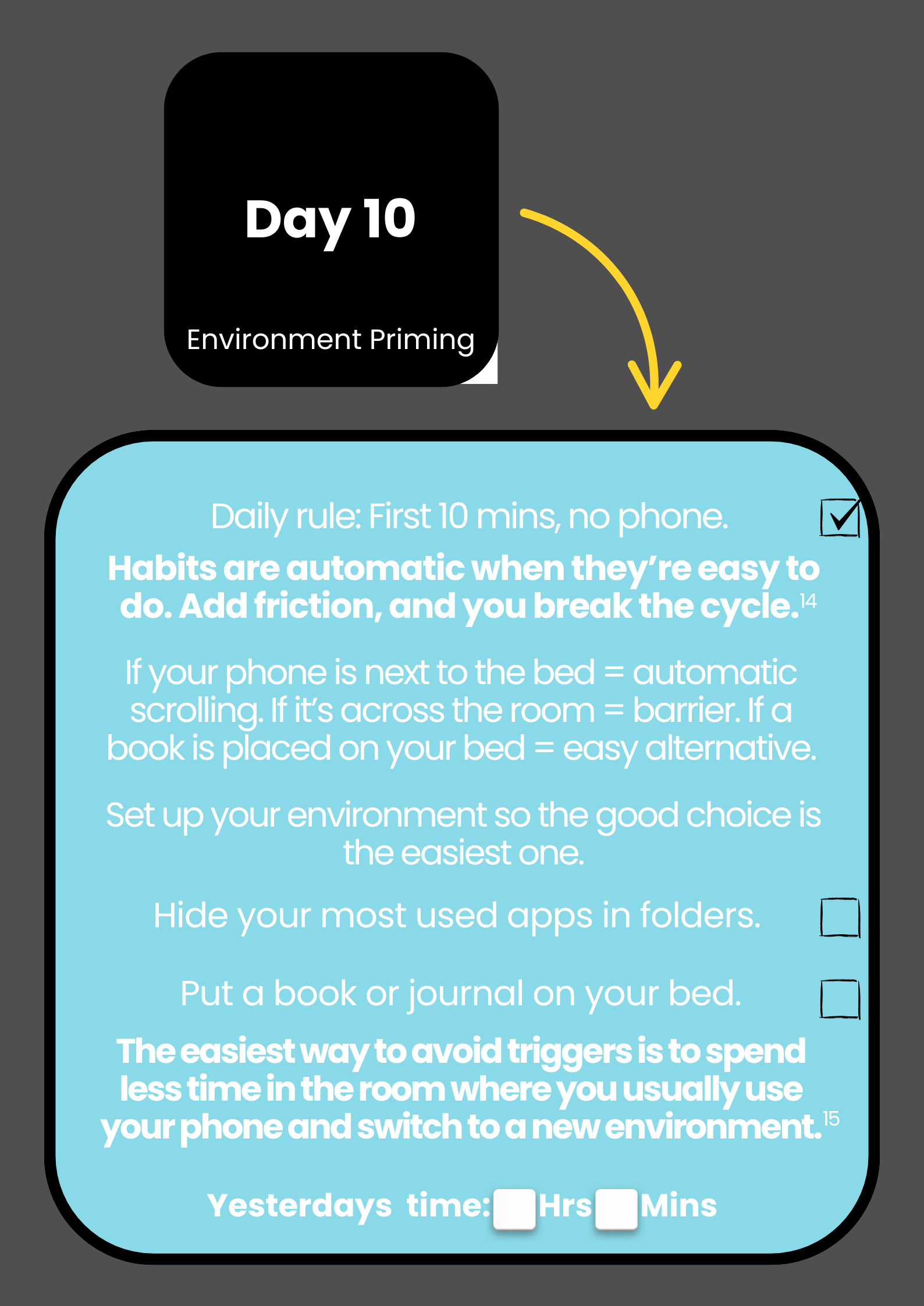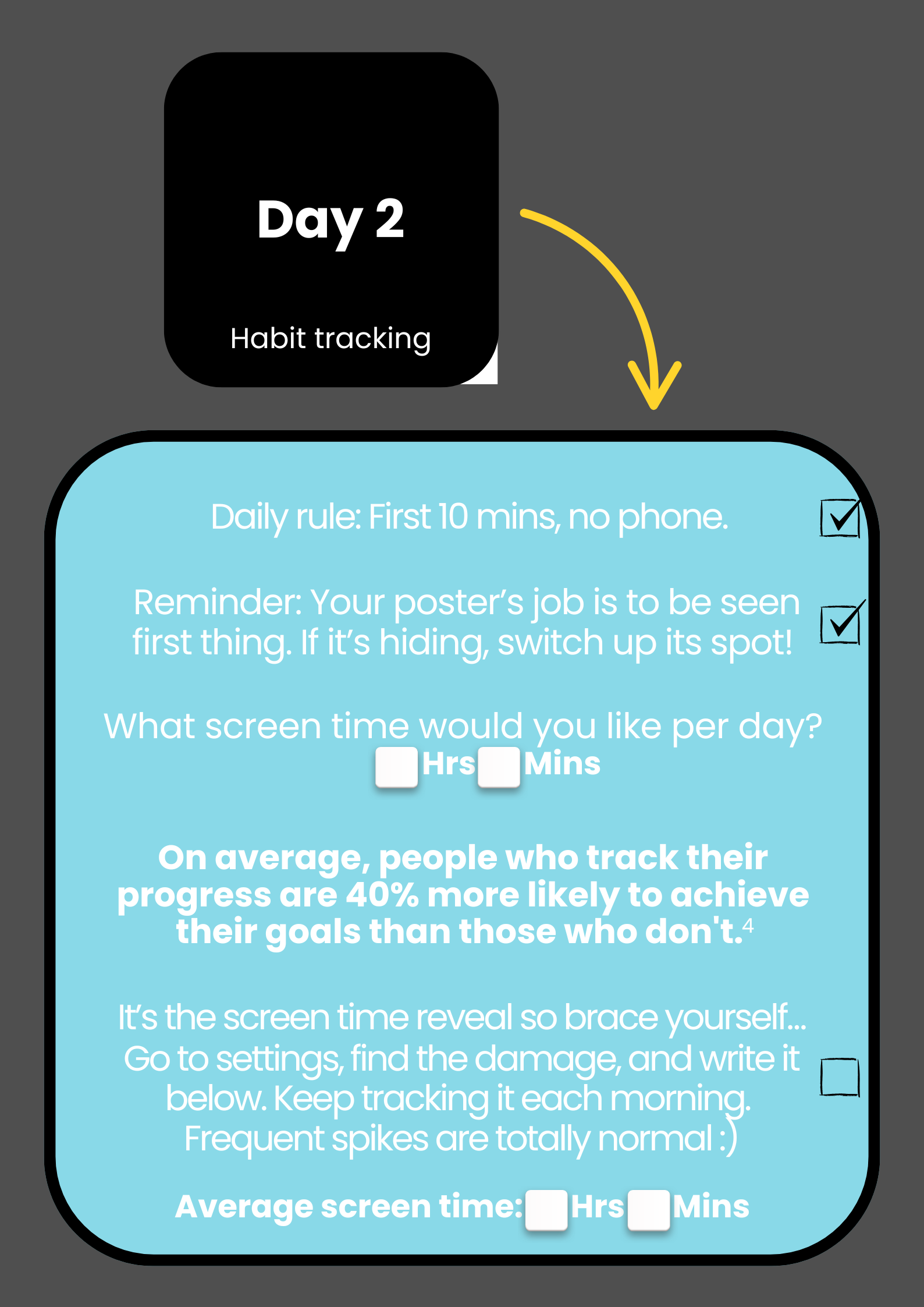 You wake up. The urge to grab your phone is fading. Just a quiet moment. You peel back today’s sticker and reveal a science-backed method to nudge you back into the real world.